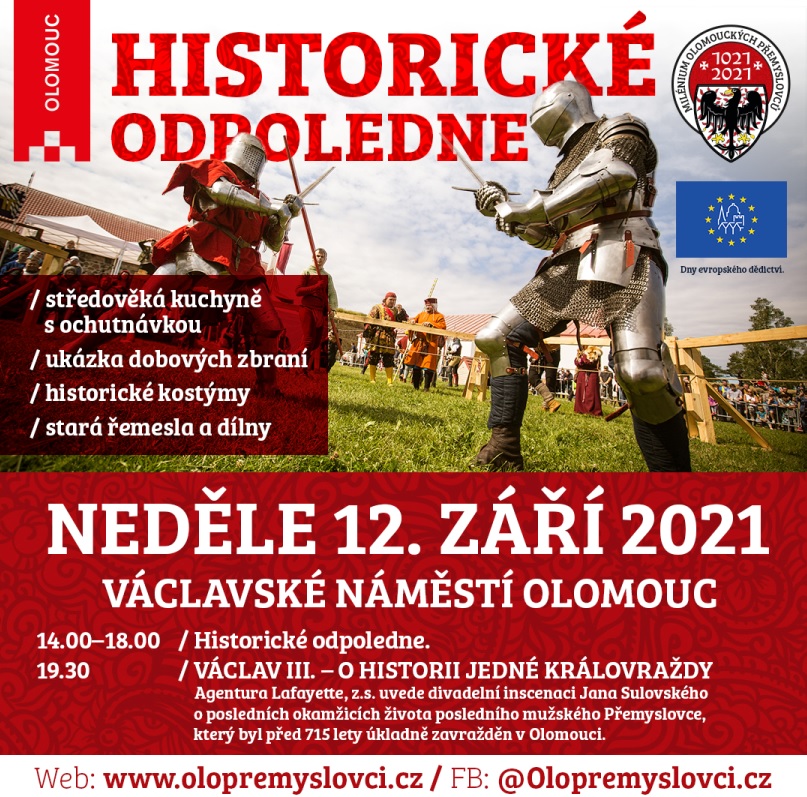 Historické odpoledne v neděli 12. září 2021 na Václavském náměstí Olomouc, začátek ve 14:00 hodin.