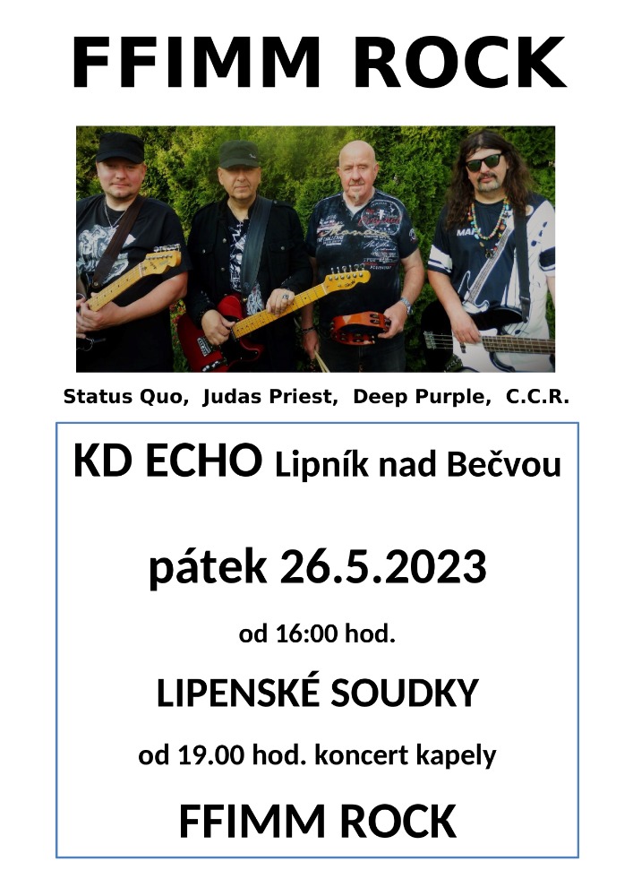 Od 17:00 hodin koncert kapely FFIMM ROCK.