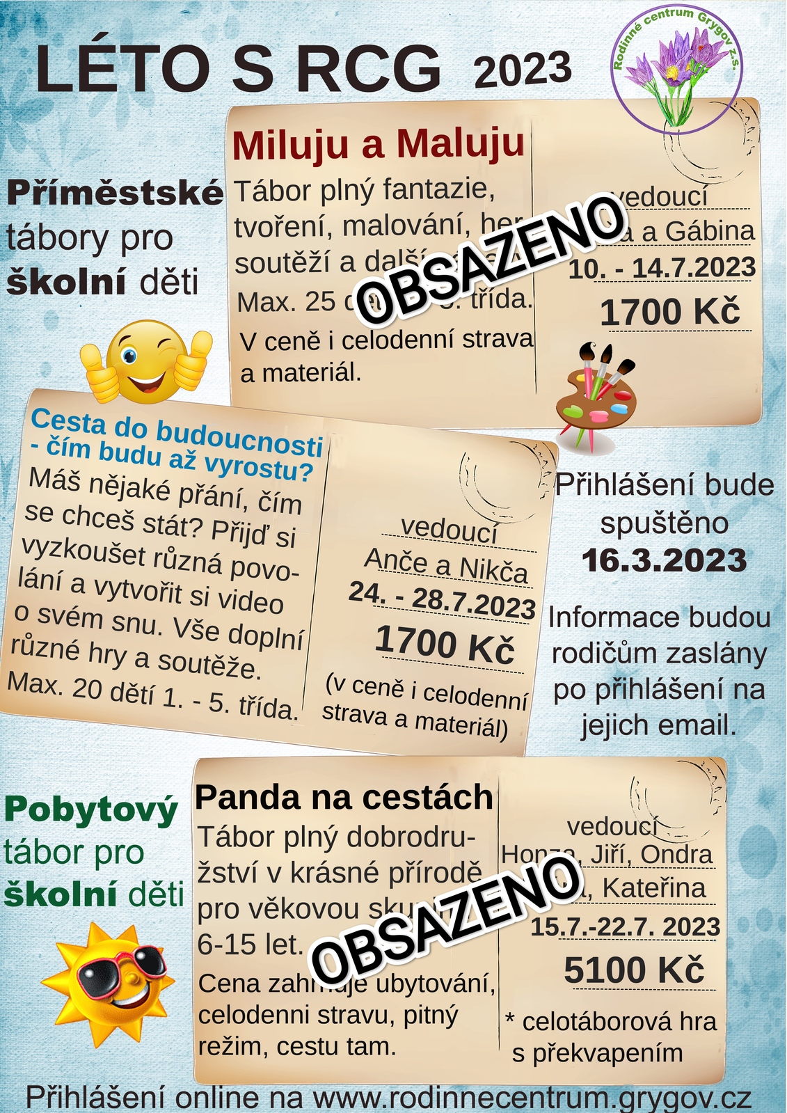 Rodinné centrum Grygov nabízí ještě pár volných míst na příměstské tábory v Grygově. Více informací na rodinnecentrum.grygov.cz