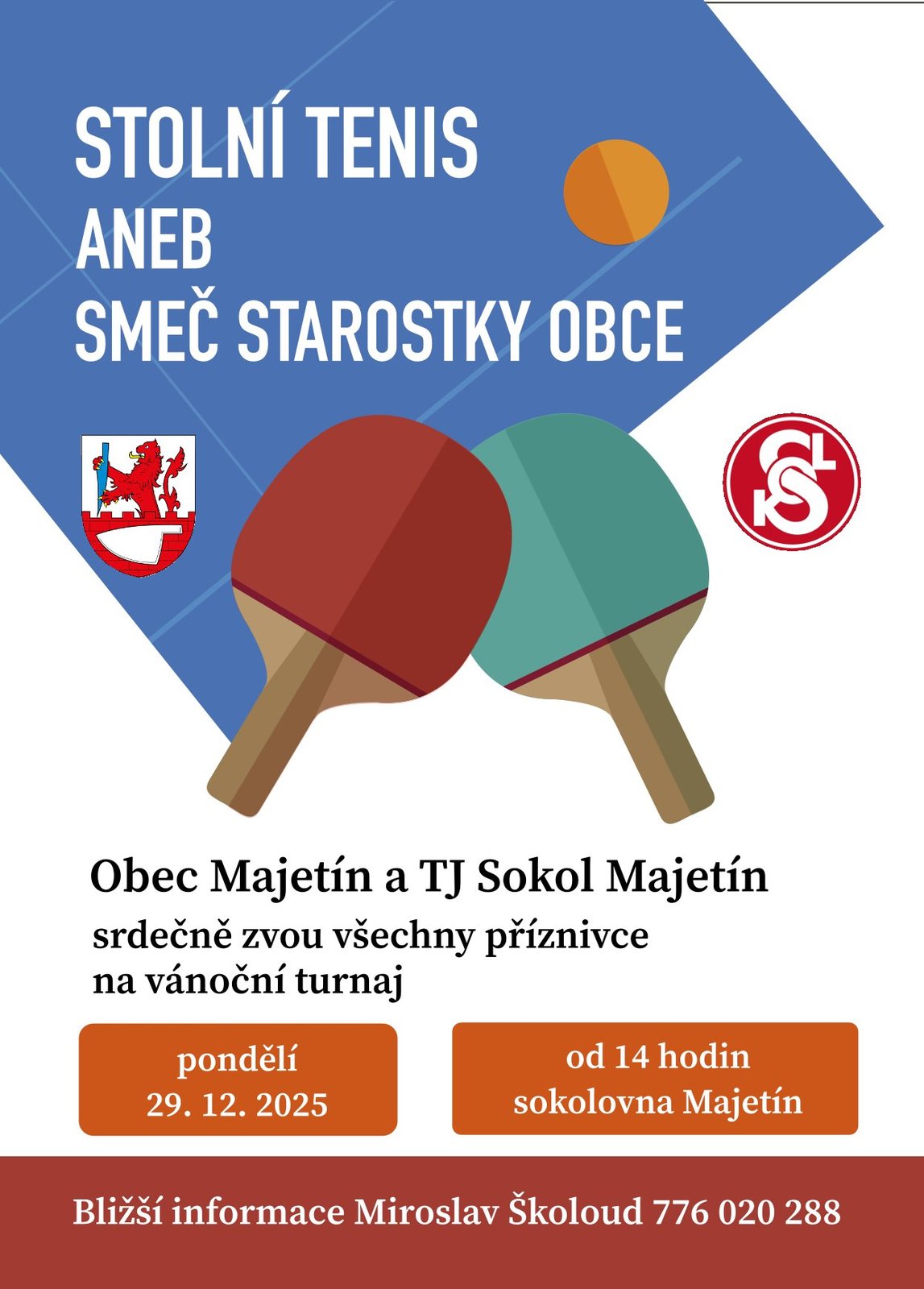 Obec Majetín a TJ Sokol Majetín srdečně zvou všechny příznivce na vánoční turnaj "SMEČ STAROSTKY OBCE"