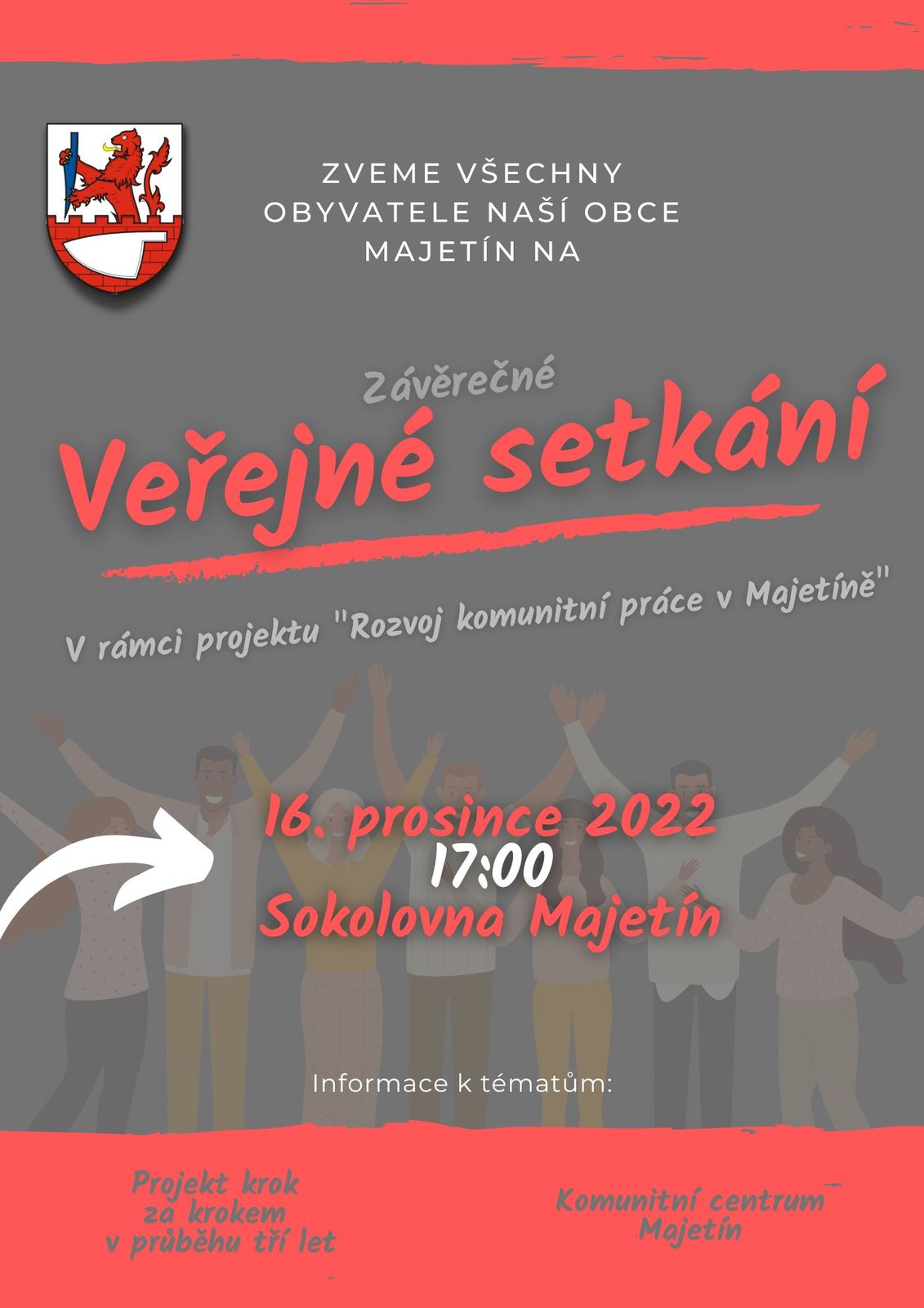 Srdečně vás zveme na veřejné setkání v rámci projektu "Rozvoj komunitní práce v Majetíně", které se uskuteční 16. 12. 2022 v 17 hodin v sokolovně.