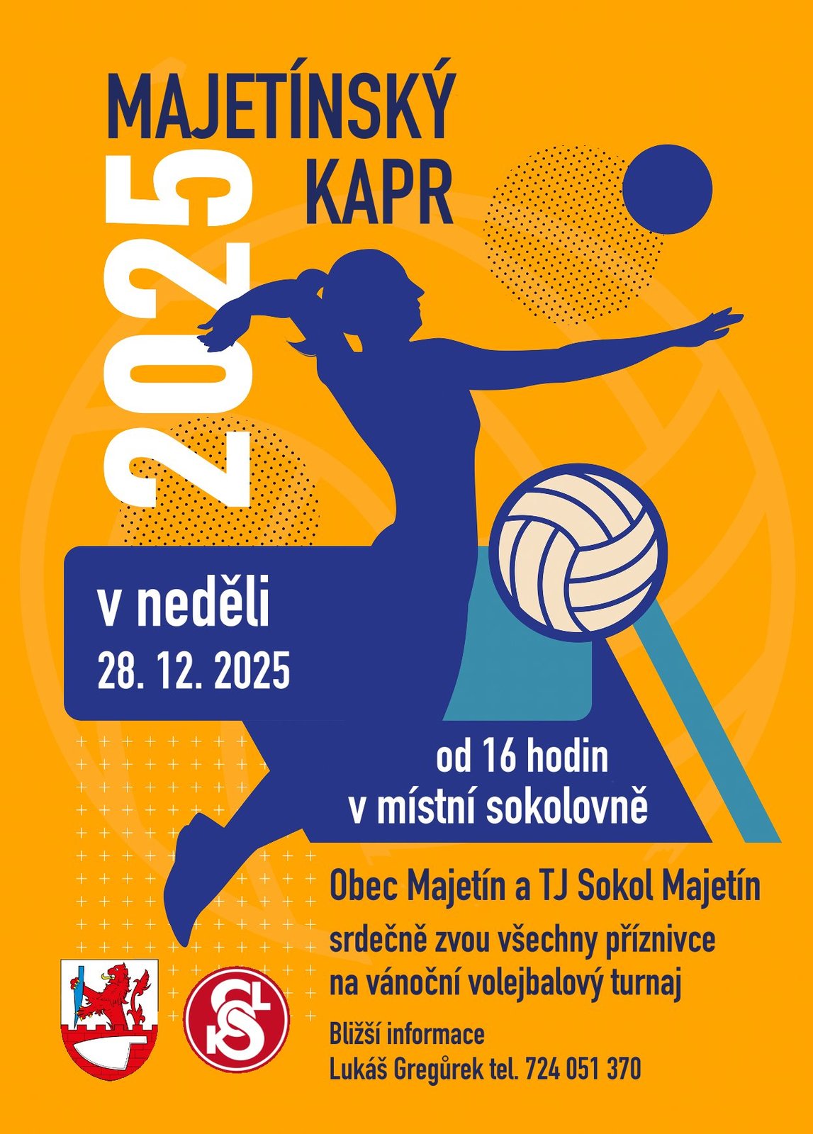 Obec Majetín a TJ Sokol Majetín srdečně zvou na vánoční volejbalový turnaj "MAJETÍNSKÝ KAPR".