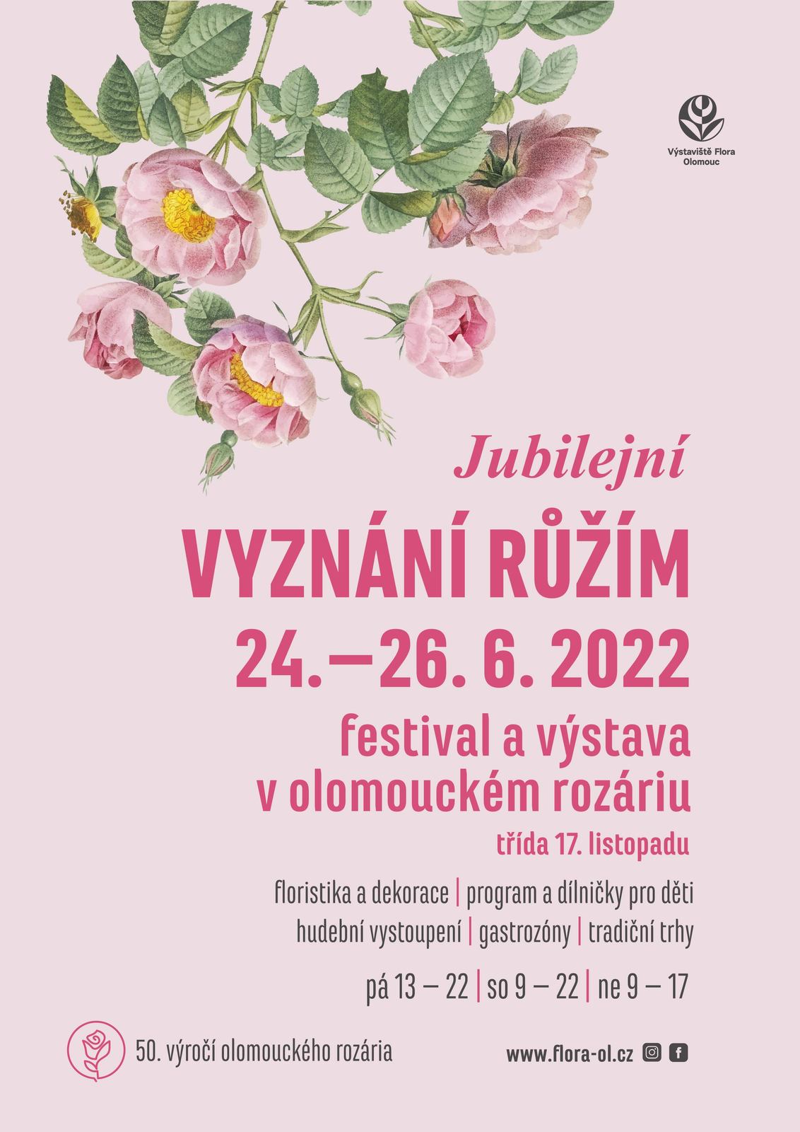 Výstaviště Flora Olomouc Vás srdečně zve na festival a výstavu Vyznání růžím, která bude od 24. do 26. června 2022 v rozáriu Olomouc na třídě 17. listopadu. Letos rozárium oslaví 50 let od založení, proto se bude jednat o mimořádnou akci.