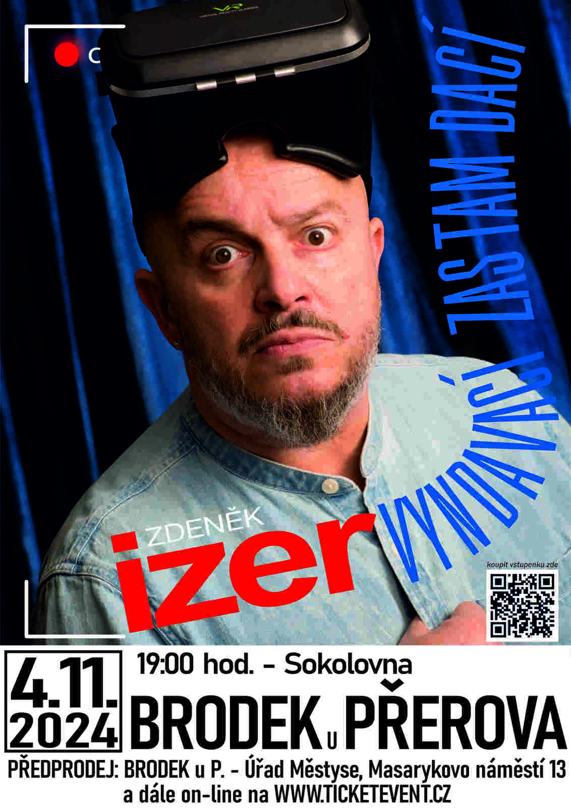 Zveme v pondělí 4. listopadu od 19:00 hodin do sokolovny v Brodku u Přerova na zábavný pořad „ Zdeněk Izer - Vyndavací zas tam dací“, ve kterém se diváci budou moci setkat s jedinečným a nezaměnitelným humorem Z. Izera. Jako vždy přijdou na řadu oblíbené zábavné scénky, parodie, mnoho skvělých vtipů . Vystoupení je opět obohacené videoprojekcemi , nejrůznějšími zábavnými kostýmy, převleky a světelnými efekty.