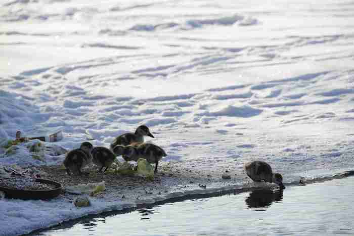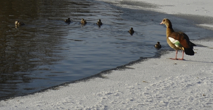 Úvod > Život v obci > Fotogalerie > Fotogalerie z akcí > Husice nilské na rybníku - foto Irena Talpová