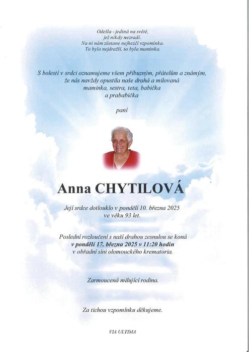 Úvod > Život v obci > Smuteční oznámení > Anna Chytilová